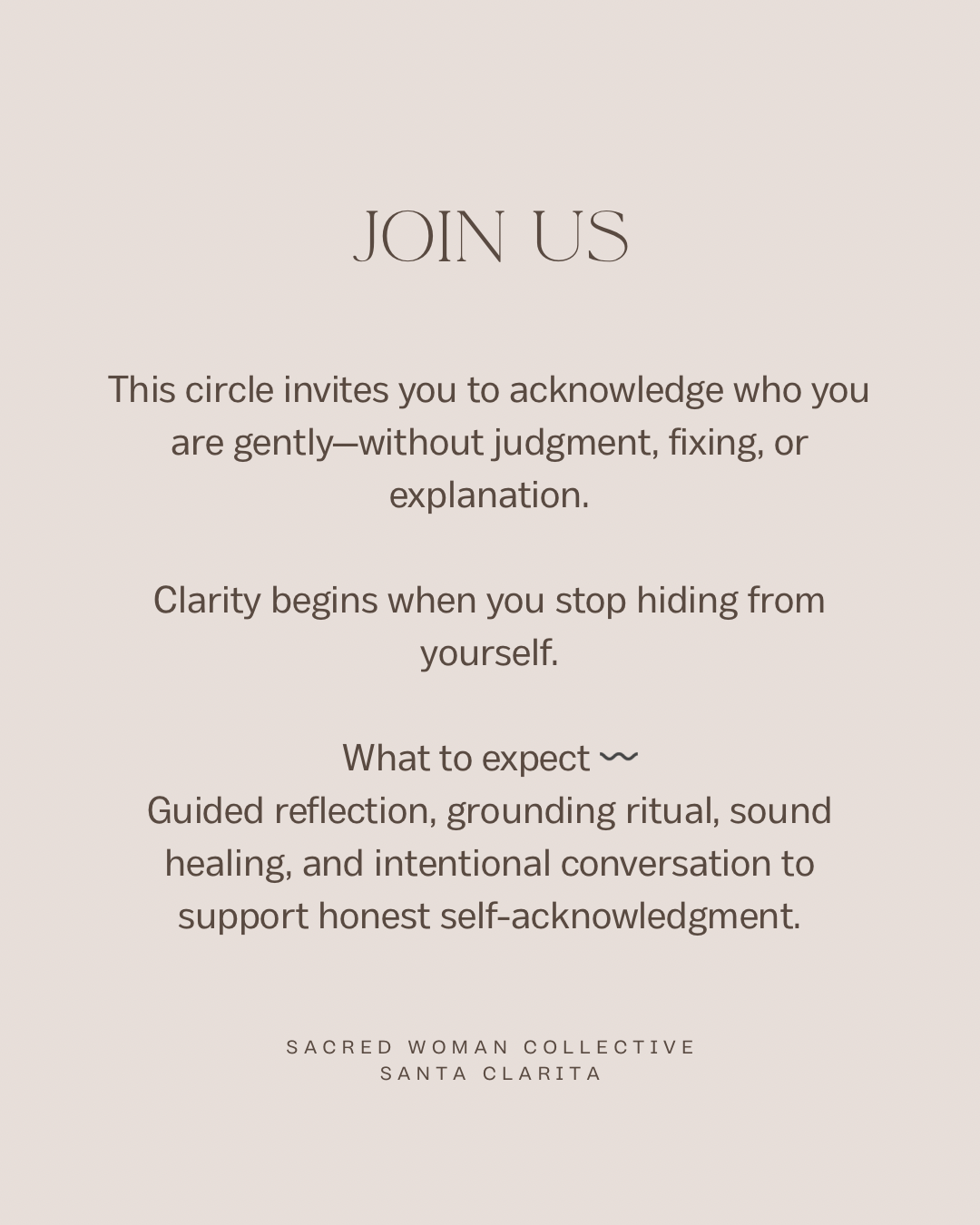 This Sunset Circle is an invitation to acknowledge who you are, exactly as you are, without judgment, fixing, or explanation. It is a space to soften, to listen inward, and to allow what has been hidden or unnamed to come into the light.