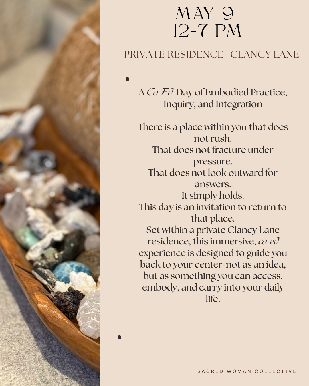 Set within an intimate private home on Clancy Lane, this immersive, co-ed experience is designed for those seeking a deeper connection to themselves—beyond concept, beyond routine, and into something lived.