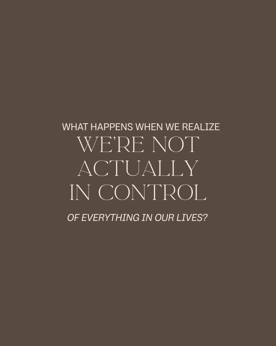 What happens when we realize we're not actually in control of everything in our lives? What happens if we stop resisting life as it is… we actually have so much more energy to create what we actually want.