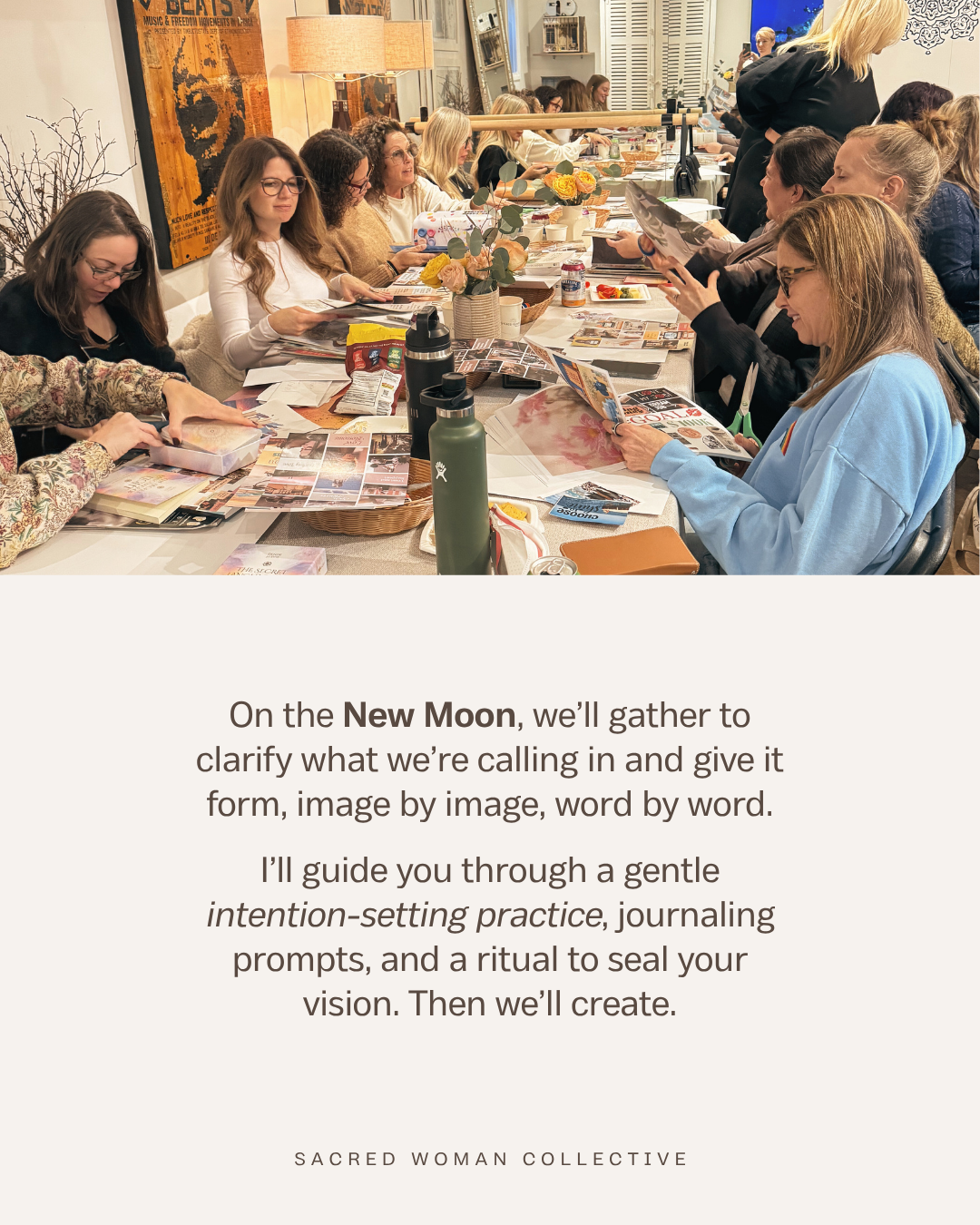 On the New Moon, we’ll gather to clarify what we’re calling in and give it form, image by image, word by word.